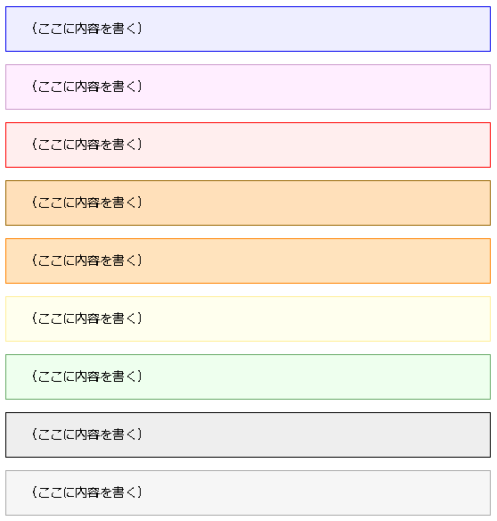 おまじない「枠」の基本サンプル変更後 ※グラデーションの設定はダメみたい。「実線」を選ぶと、「2重線」になるように設定。枠の色、背景の色も変更。(ここに内容を書く)box_purple_…